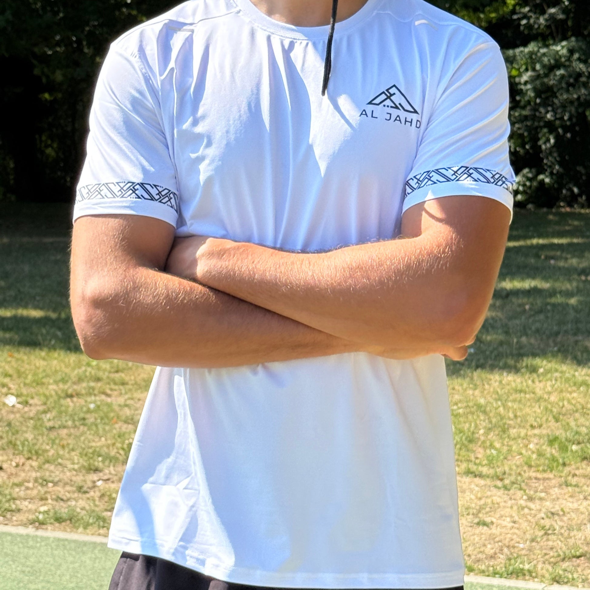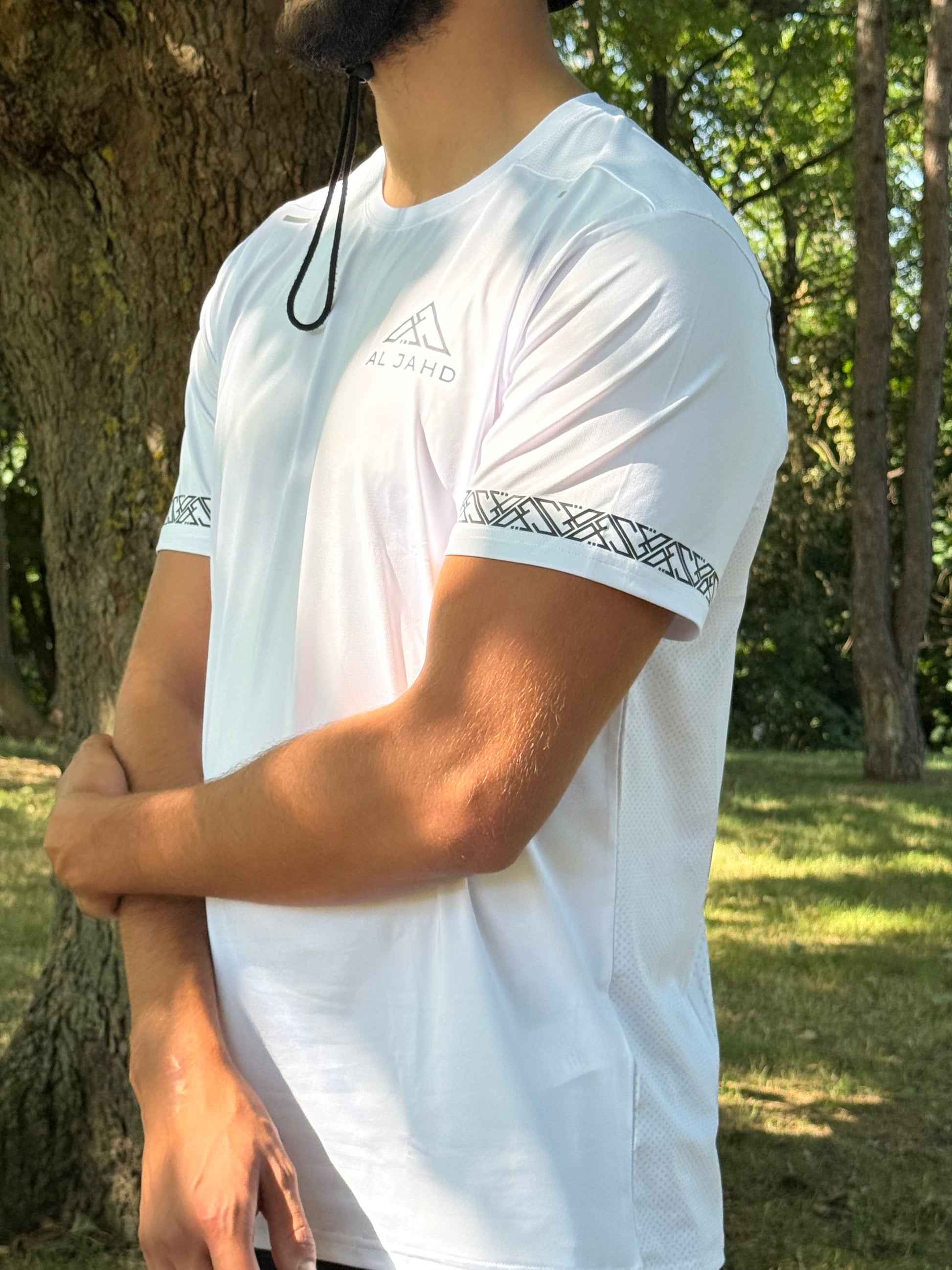Affirmez votre détermination avec ce t-shirt Al Jahd. Sa coupe moderne et son tissu léger garantissent un confort optimal au quotidien. Le motif graphique sur les manches et le logo discret apportent une touche unique à votre look sportif ou décontracté.